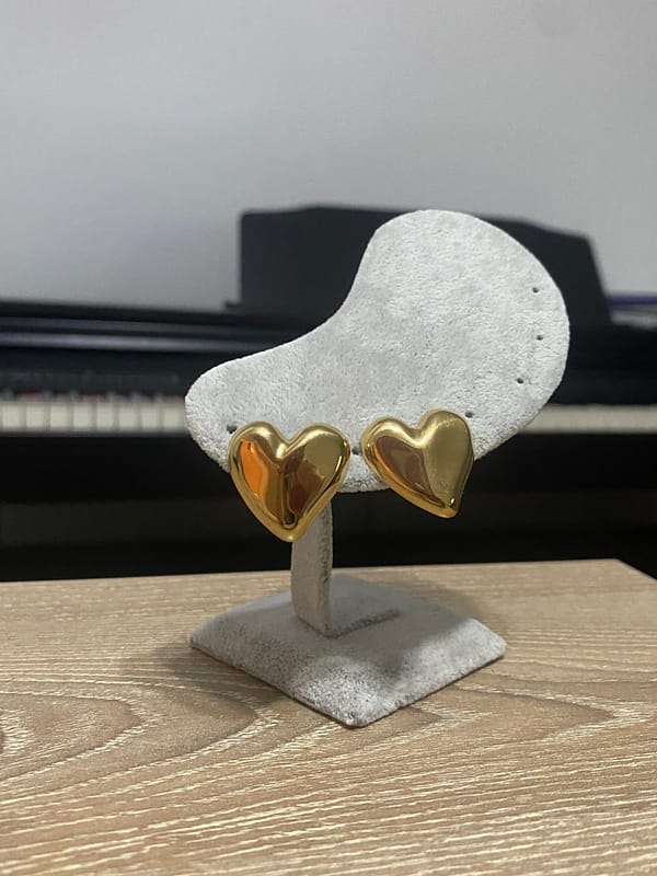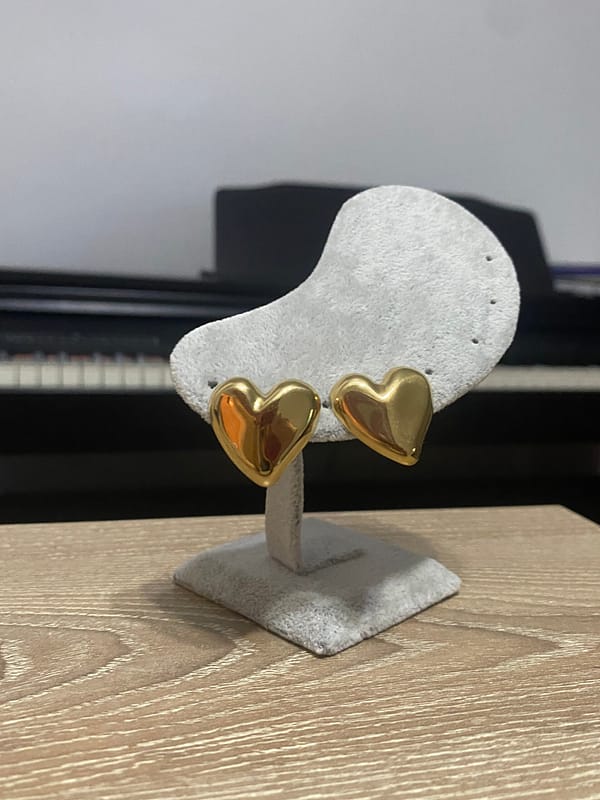 Bu küpeyi gündüz jean-bluz kombinleriyle ya da akşam elbise ile kullanabilirsiniz. Saçlarınız açık olduğunda kalp formu ön planda olur; toplu saç ile daha sofistike bir görünüm yaratır. Ayrıca ince altın kolyelerle ya da aynı tonlarda bileziklerle kombinleyerek takım havası yaratabilirsiniz.
