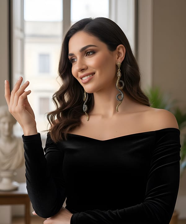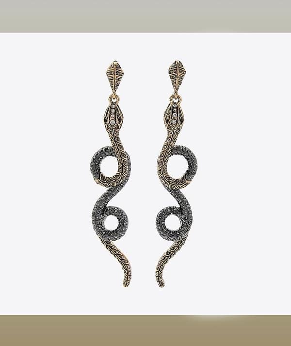El işçiliği dokunuşlu, vintage esintili siyah yılan küpe — geceye özgünlük katmak isteyenler için tasarlandı.